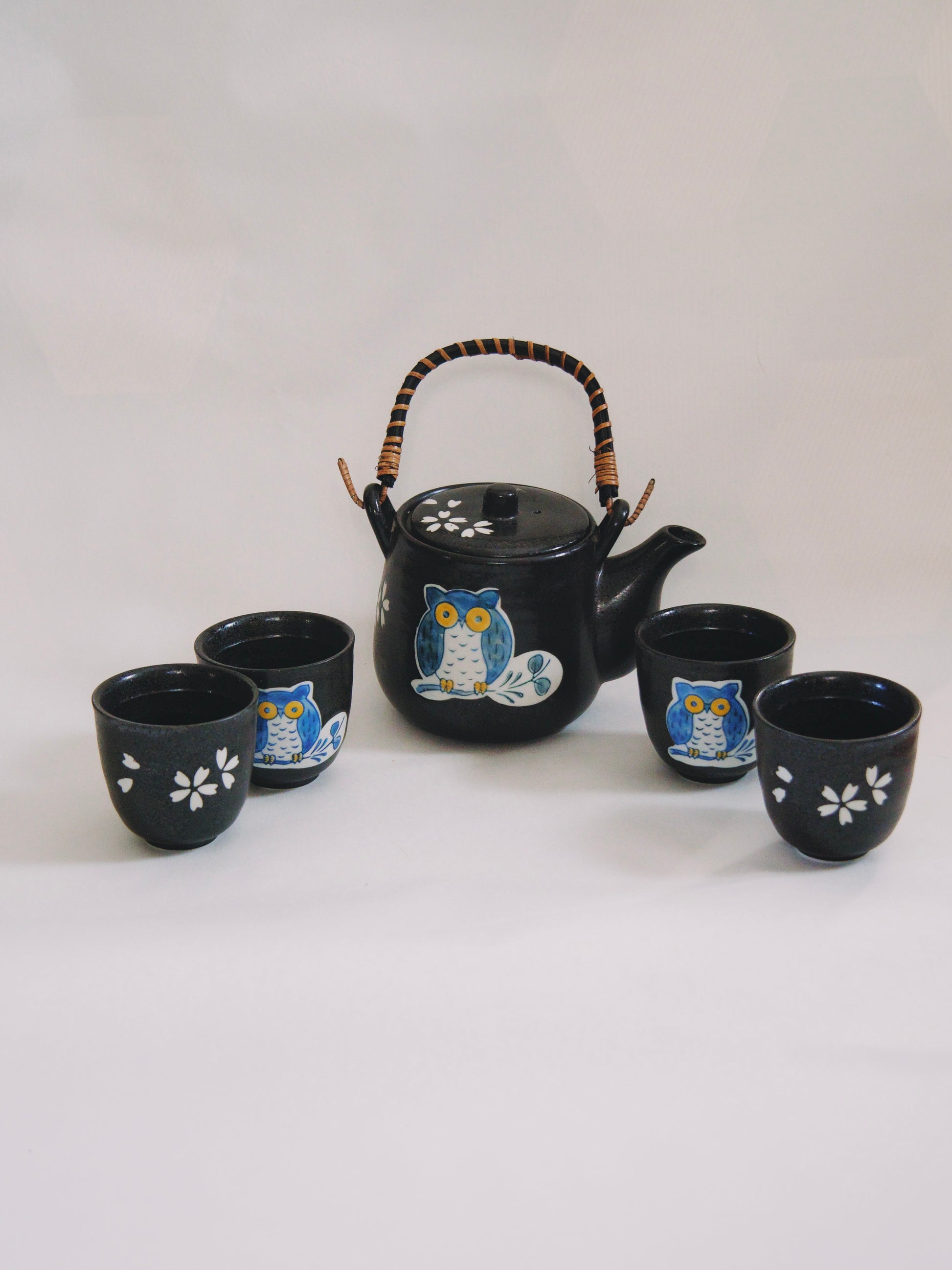Aller simple direct pour Kyoto avec ce mignon service à thé hiboux et fleurs de cerisiers qui donnera des couleurs à votre tea time !